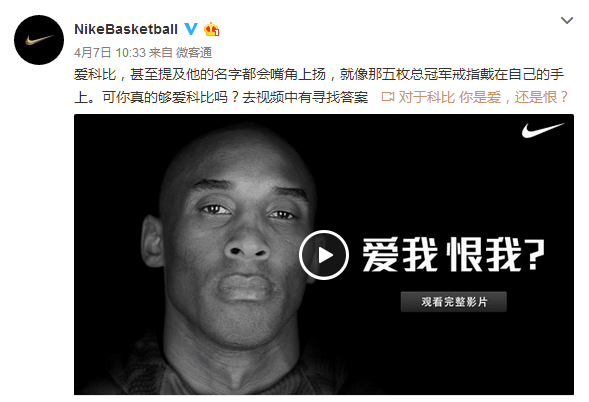 NIKE官方微博連封面圖都換了,還拍了一支TVC