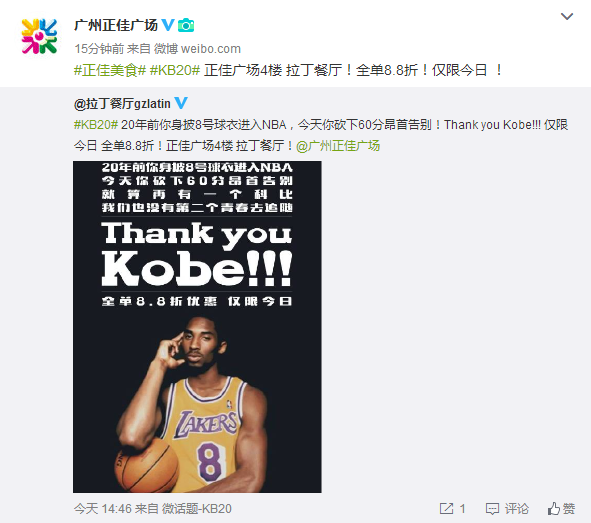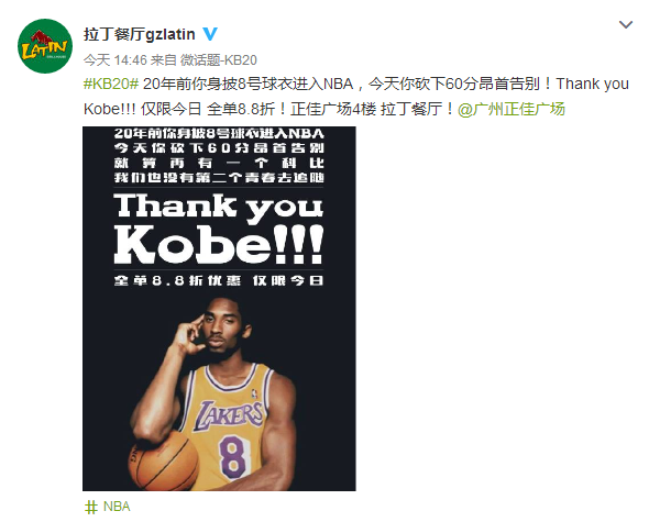 如果你是科比的球迷,看到這樣的活動(dòng),相信會(huì)覺(jué)得這是一家有情懷的餐廳。