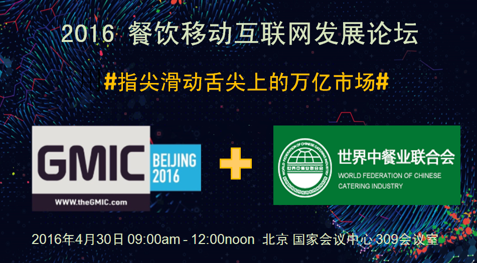 全球最具影響力的移動(dòng)互聯(lián)頂級(jí)盛會(huì)2016 “全球移動(dòng)互聯(lián)網(wǎng)大會(huì)”(GMIC)將于2016年4月28日-30日在國家會(huì)議中心舉辦。本屆GMIC的亮點(diǎn)之一是將“移動(dòng)互聯(lián)+”推展到了“舌尖”之上。為更好地探索餐飲業(yè)與移動(dòng)互聯(lián)網(wǎng)的深度融合,探尋“指尖滑動(dòng)舌尖上的萬億市場“,世界中餐業(yè)聯(lián)合會(huì)攜手GMIC及國家會(huì)議中心,于2016年4月30日在國家會(huì)議中心共同舉辦“2016餐飲移動(dòng)互聯(lián)網(wǎng)發(fā)展大會(huì)”。