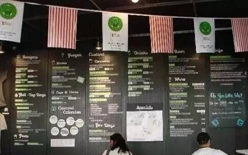 Shake Shack不管從餐廳氛圍和產(chǎn)品印象上都屬于“高大上”的范疇。創(chuàng)始人請來了全球頂級設(shè)計師 Paula Scher設(shè)計裝潢和圖標。綠色和白色營造出休閑清新的氛圍,將近60%的露天座位、遠遠看去就是一家高端餐廳,誰也不會想到這是一家快餐店。