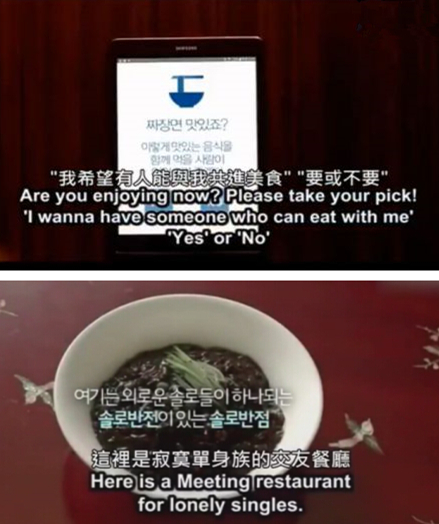 就在去年,網(wǎng)絡(luò)上傳出一段視頻,介紹韓國一家特色餐廳,只招待單身的客人??腿诉M店后,店員會詢問是否單身,隨后將客人安排在特定的位置(感覺上就像是探監(jiān)的小窗口),單人座位置,桌上三面都圍著隔板。