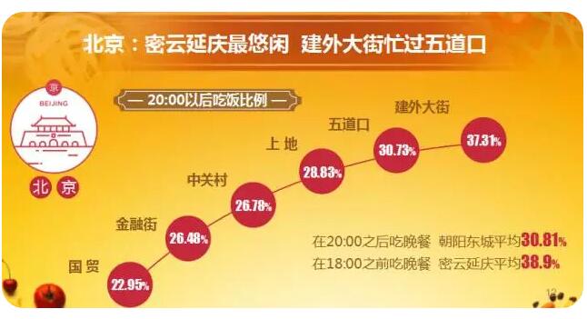 其中,帝都有31.79%的消費(fèi)者晚飯時(shí)間在20:00之后。