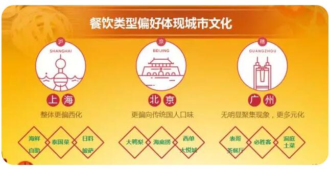 上海整體更偏西化;北京則是更加傾向于傳統(tǒng)國人口味;廣州沒有明顯的傾向,更加多元化。