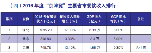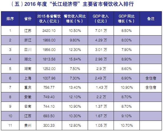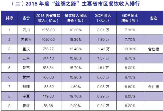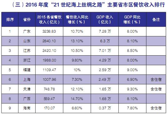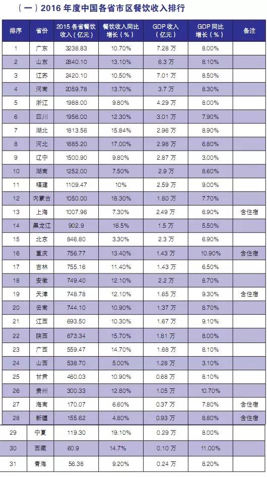 一、2016年度國內各省市餐飲收入排行(2015財年)
