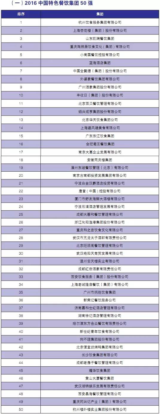 二、2016年度中國餐飲集團百強榜(2015財年)