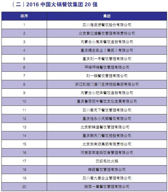 火鍋餐飲50強營業(yè)額合計超過450億元,四川海底撈餐飲股份有限公司成為領軍企業(yè),北京黃記煌餐飲管理有限責任公司、內蒙古小尾羊餐飲連鎖有限公司進入前三甲;