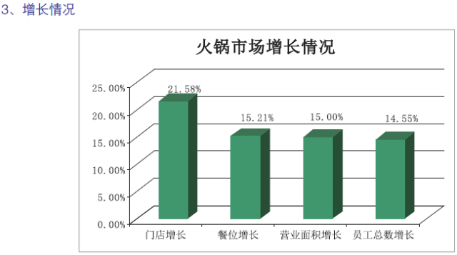 從人均消費看,正餐、火鍋、快餐、團餐、西餐及休閑餐飲的人均消費增長分別為10.76%、4.85%、8.29%、2.13%、13.33%,這種增長所反映的消費升級中為企業(yè)提供了巨大的增長空間和商機。