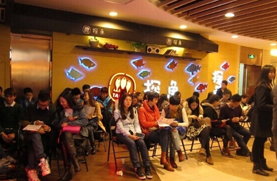 我們在上文中提到,快時尚餐廳常以低價菜品吸引客流,客流量越大越能保證餐廳的收益。然而,餐廳空間的容納量畢竟有限,因此我們常常會看到快時尚餐廳的門口大排長龍。為了避免等位顧客的流失,餐廳對等位區(qū)的“整形”也相當重視,除了提供免費茶點等,幾乎每家快時尚餐廳都會引進等號軟件系統(tǒng),縮短顧客在店前等待的空白時間,提升服務滿意度。