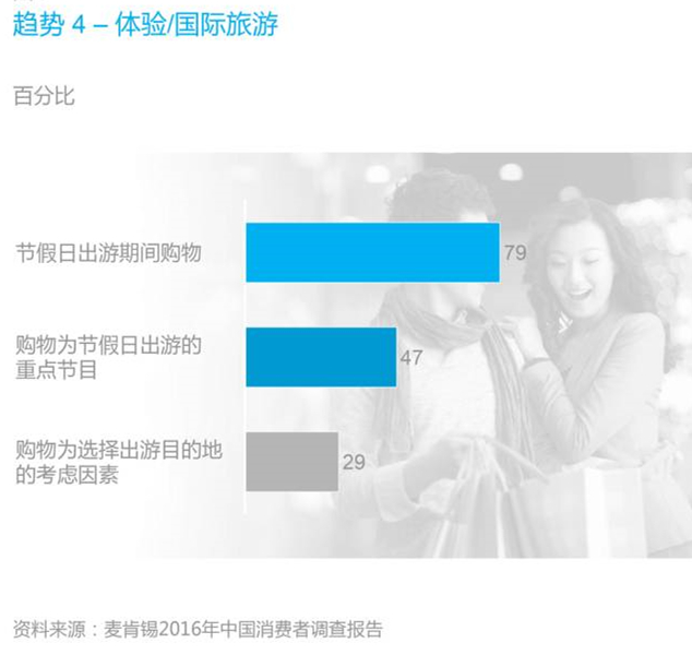 2015年中國出境旅游超過7000萬人,平均每人1.5次。購物是中國消費(fèi)者境外游的“保留節(jié)目”:80%的消費(fèi)者在海外購物,將近30%的人甚至根據(jù)購物機(jī)會(huì)來決定旅游目的地。