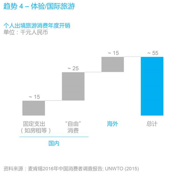 對(duì)于7000萬出境游的中國人,海外旅游占到其個(gè)人年度開支的25%。從境外消費(fèi)構(gòu)成看,旅行相關(guān)開銷占到一半,另一半都用在了購物,他們的手表和手袋有一半購自海外,服裝和化妝品是最熱門的購物品類。