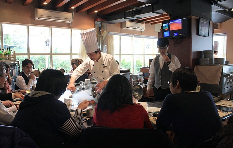 這時(shí)候的客人便不再只是自顧自地低頭吃飯,而是會(huì)產(chǎn)生一種親臨美食料理節(jié)目現(xiàn)場(chǎng)的感覺(jué)。一邊吃飯還能一邊欣賞料理秀,一餐飯下來(lái),客人填飽的不僅僅是肚子,還一飽了眼福。