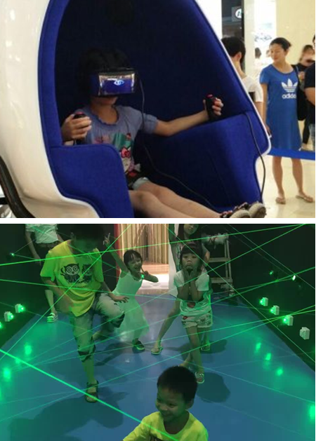 據(jù)介紹,9D虛擬現(xiàn)實體驗倉,將視覺、聽覺、嗅覺、觸覺和動感完美地融為一體,觀眾在觀看電影時,不僅可以“觸摸”到電影中的物體,還能“遇到”刮風(fēng)、下雨、雷電等場景,讓人身臨其境,妙趣橫生。而“穿越紅外線”是一款兒童冒險裝置,趣味的關(guān)卡設(shè)置和適當?shù)碾y度,可以讓孩子體驗一場奇幻刺激的冒險游戲。