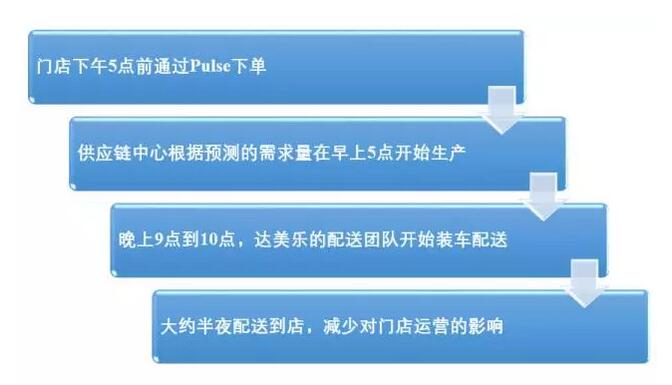 達美樂強大的供應鏈更加強了加盟商和達美樂之間的聯(lián)結(jié),成為這個系統(tǒng)里不可或缺的一環(huán)。簡單來說,達美樂的供應鏈就是一個自建中央廚房配送半成品給門店的模式。