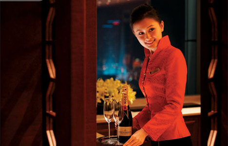 1、代客存酒服務會有兩個效果:A:客人喝不完的名酒,丟之可惜,拿又顯寒酸,不如存放在餐廳內(nèi),而掛上牌子的那瓶酒仿佛是一誘餌,最終又會吸引客人前來消費。B:可以滿足客人企望獲得尊重的心理需求。若在藏酒櫥前走一走,看到櫥中其中的一瓶酒赫然掛著自己的名字,這是何等的榮耀。2、提供宴請賓客的席位卡,并在餐廳的醒目位置標記公司的名稱或指示牌。3、提供客人婚宴、壽宴的“喜或壽”字,播放“婚禮曲、生日歌”,讓客人有一種喜悅歡慶的感覺。4、設(shè)置專用餐具、酒杯,以此栓住客人的心。