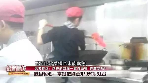 記者臥底時發(fā)現(xiàn)廚房師傅不僅徒手接觸熟食,不僅手指直接插飯里,記者還看到觸目驚心的一幕,廚房師傅用掃把刷蒸爐炒鍋灶臺。話不多說,直接看圖吧。
