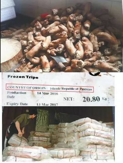 執(zhí)法人員在該工廠的凍庫內(nèi),發(fā)現(xiàn)部分牛肚、豬肚、雞肫、雞翼等凍品涉嫌不合法。執(zhí)法人員現(xiàn)場清查了206箱涉嫌未經(jīng)檢疫的凍品,330箱涉嫌標簽不符合相關(guān)法規(guī)的凍品,共重約10噸。隨后,執(zhí)法人員依法對該批凍肉進行暫扣。