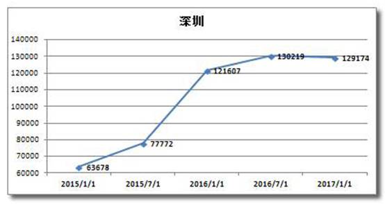 (2015年起深圳地區(qū)每半年存量趨勢(shì)圖)