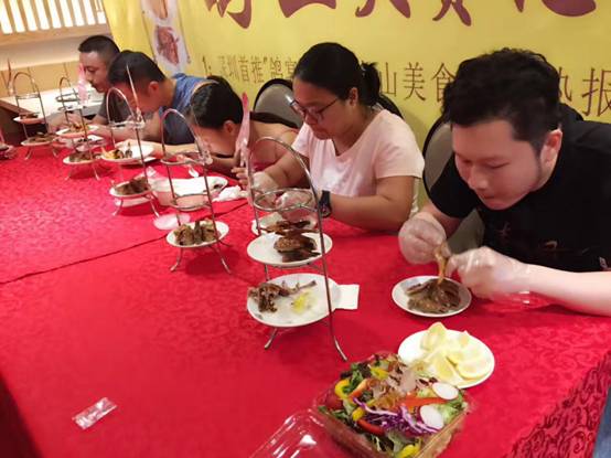 臺上比賽得精彩,臺下也吃得熱鬧。在決賽現(xiàn)場,譚廚為中山美食游的朋友們準備了全鴿宴!