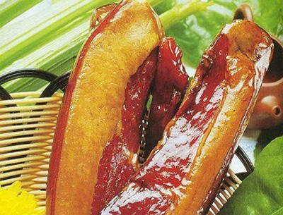 臘肉是湖北、四川、湖南、江西、貴州、甘肅隴西、陜西的特產(chǎn),已有幾千年的歷史。據(jù)記載,早在兩千多年前,張魯稱漢寧王,兵敗南下走巴中,途經(jīng)漢中紅廟塘?xí)r,漢中人用上等臘肉招待過他;又傳,清光緒二十六年,慈禧太后攜光緒皇帝避難西安,陜南地方官吏曾進(jìn)貢臘肉御用,慈禧食后,贊不絕口。加工制作臘肉的傳統(tǒng)習(xí)慣不僅久遠(yuǎn),而且普遍。每逢冬臘月,即“小雪”至“立春”前,家家戶戶殺豬宰羊,除留夠過年用的鮮肉外,其余乘鮮用食鹽,配以一定比例的花椒、大茴、八角、桂皮、丁香等香料,腌入缸中。七~十五天后,用棕葉繩索串掛起來,滴干水,進(jìn)行加工制作。選用柏樹枝、甘蔗皮、椿樹皮或柴草火慢慢熏烤,然后掛起來用煙火慢慢熏干而成?;驋煊跓窕鸬脑铑^頂上,或吊于燒柴火的烤火爐上空,利用煙火慢慢熏干。西部地區(qū)林茂草豐,幾乎家家都燒柴草做飯或取暖,是熏制臘肉的有利條件。即使城里人,雖不殺豬宰羊,但每到冬臘月,也要在那市場(chǎng)上挑那上好的白條肉,或肥或瘦,買上一些,回家如法腌制,熏上幾塊臘肉,品品臘味。如自家不燒柴火,便托鄉(xiāng)下親友熏上幾塊