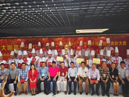 10月28日上午十一時(shí),由深圳市飲食服務(wù)行業(yè)協(xié)會(huì)和湖南省餐飲行業(yè)協(xié)會(huì)聯(lián)合主辦的2017首屆湘菜廚王爭(zhēng)霸賽在深圳落幕?!笆硲?zhàn)+實(shí)戰(zhàn)大咖”餐飲高峰論壇、名廚委聘請(qǐng)儀式、湘菜廚王頒獎(jiǎng)典禮、“尋味洞庭湖”魚頭宴......場(chǎng)場(chǎng)活動(dòng)精彩紛呈。在湘菜泰斗王墨泉,湘菜大師高沉香、王伏明、張小春、鄭強(qiáng)生、曾廣富、何華山、陳燦,以及深圳市飲食服務(wù)行業(yè)協(xié)會(huì)鄭偉乾副會(huì)長(zhǎng)、王英知副會(huì)長(zhǎng),深飲協(xié)湘菜名廚專業(yè)委員會(huì)主席劉文、湖南省餐飲行業(yè)協(xié)會(huì)副會(huì)長(zhǎng)歐陽(yáng)海林、大湘菜報(bào)社長(zhǎng)陳勝年等嘉賓的一齊見證下,誕生了首屆“廚王”羅桂君。